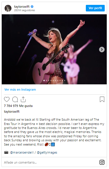 Según estimaciones, en este 2024 se proyecta que el Eras Tour alcance una vez más los mil millones de dólares, por lo que la cantante recaudaría más de 2 mil millones de dólares durante la gira.